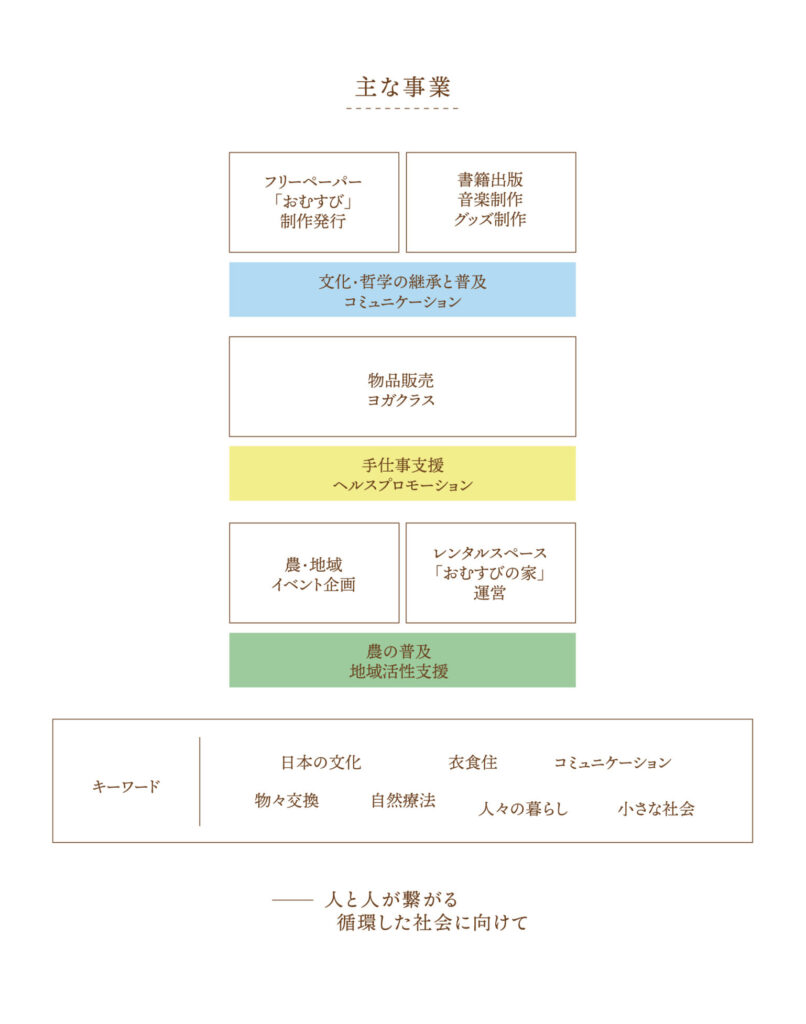 | 事業内容 | フリーペーパーの編集・発行 書籍の編集・発行・販売 グッズ制作・販売 仕入れ・販売 農業普及支援 イベント企画 レンタルスペース運営 |